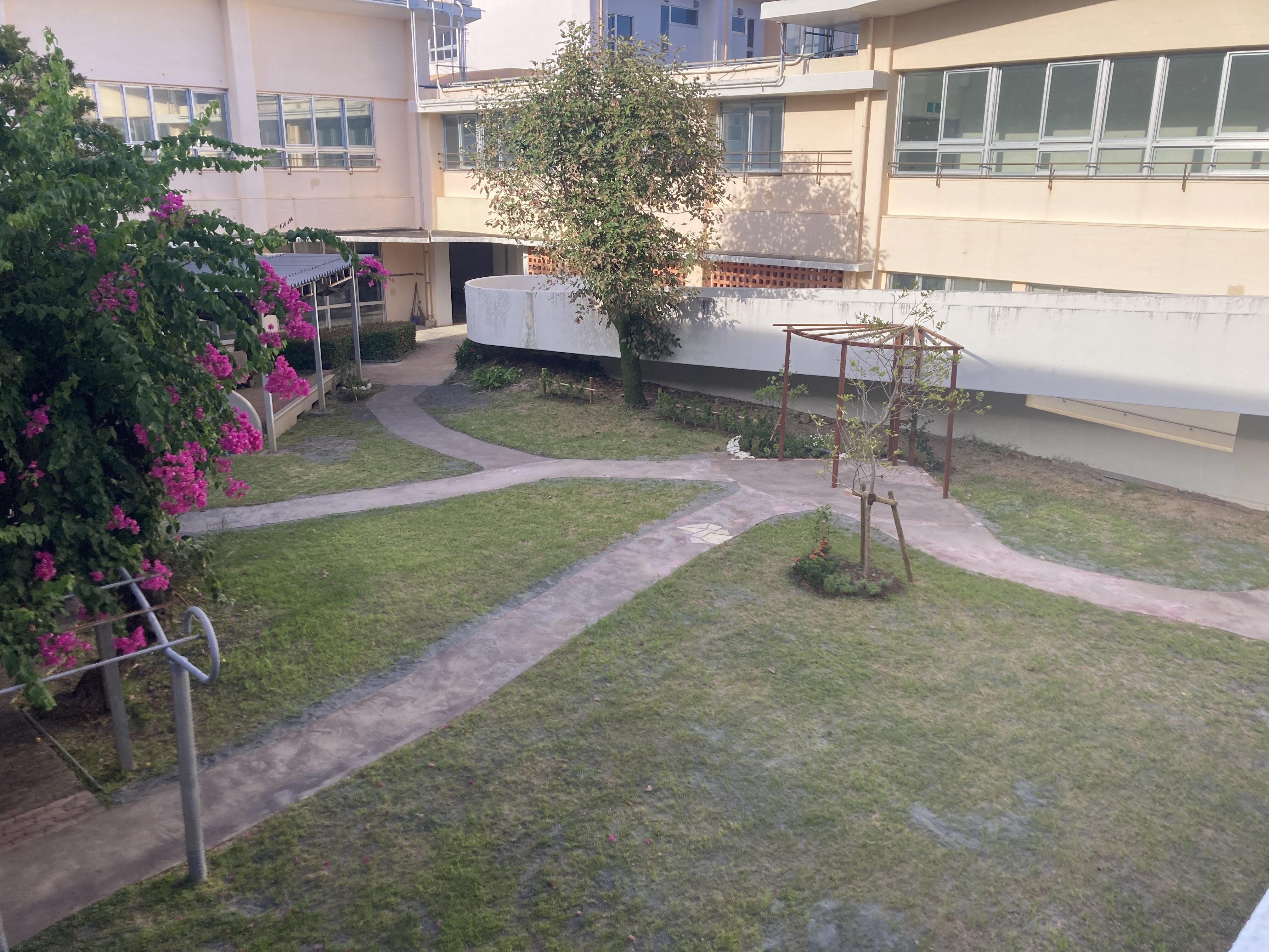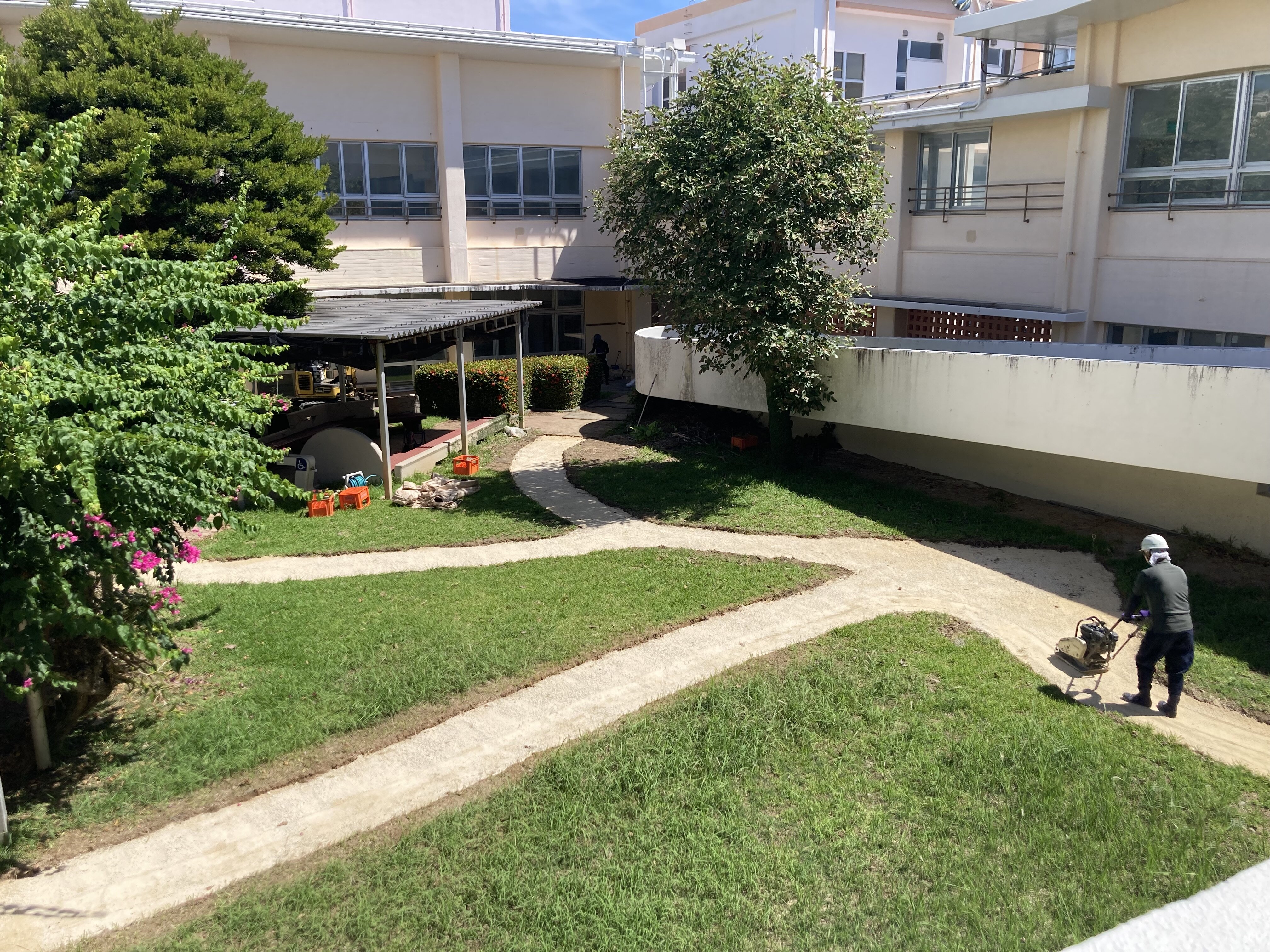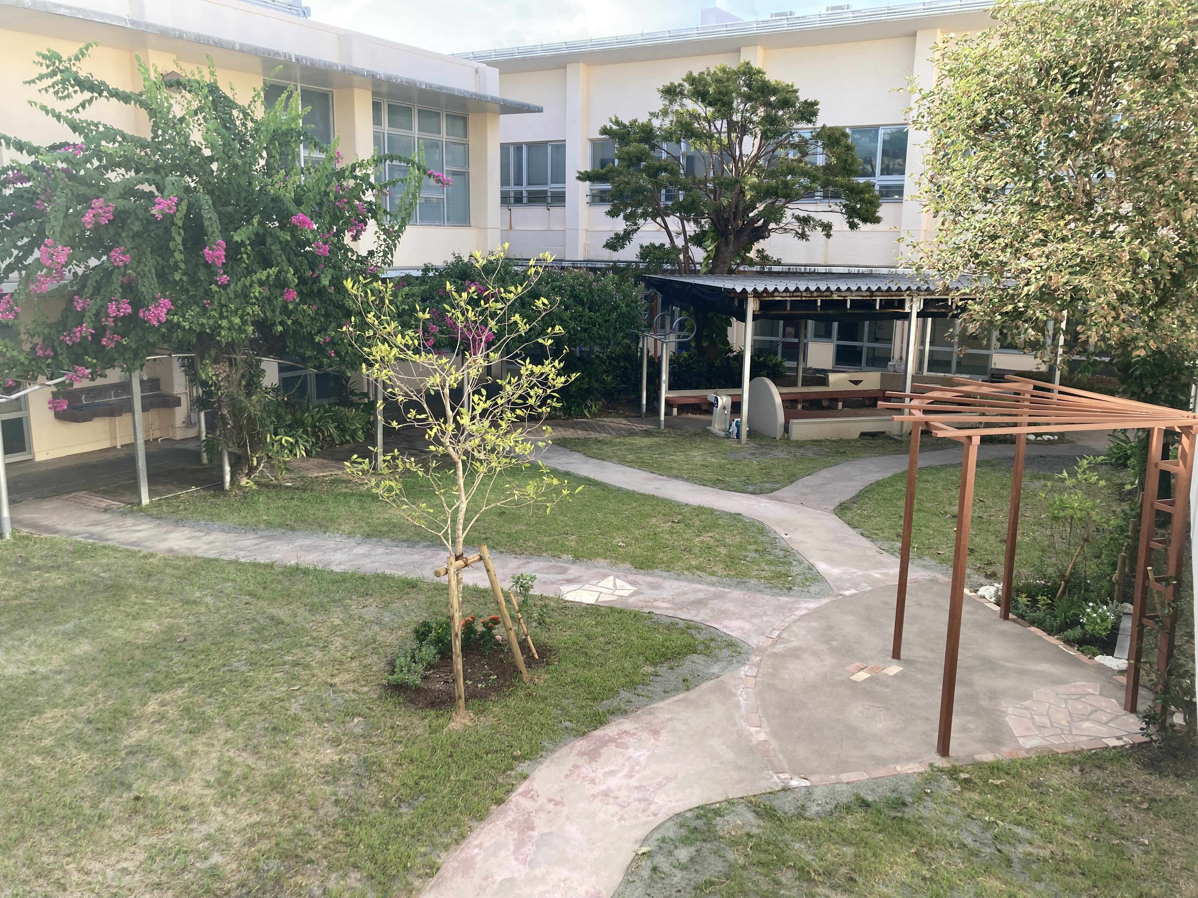 中庭改修や備品の購入は本校40周年事業期成会の予算で実施しております。
